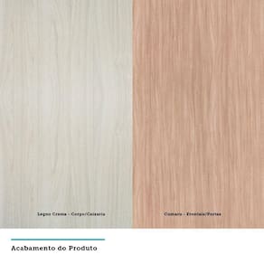 Características: Matéria Prima: MDP 15mm Corpo/Caixaria: MDP Legno Crema PF. Frontais: Cumaru BP. Estrutura e prateleira: FF Corrediças: SIM (TELESCÓPICAS) Dobradiças: Sim, metálicas (Curvas 35mm) Frontal: Alumínio com Reflecta Puxadores: Perfil Alumínio Montagem com Minifix, Cantoneiras, Parafusos e cavilhas