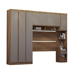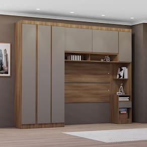 Ambiente composto por: - 1 Guarda Roupa Modulado 3 Portas e 2 Gavetas -230 x 101,5 x 46,5- - 1 Armario Aereo Maleiro Modulado 2 Portas -82 x 145 x 41,5- - 1 Mesa de Cabeceira Alta 1 Porta e 1 Gaveta -230 x 38 x 41,5- - 1 Painel Cabeceira Solteiro -90 x 97 x 1,5-