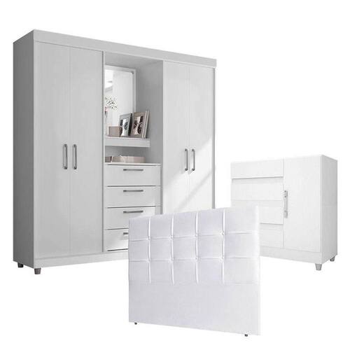 Quarto de Casal Guarda Roupa 2218 Cômoda 8000 e Cabeceira Luiza 160 cm Branco - Araplac
