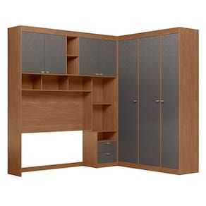 Quarto casal Lugano Jatobá Grafite: O jogo Lugano é a solução completa para quartos que precisam de organização sem perder estilo. Roupeiro, módulos acima da cama e prateleiras laterais deixam tudo com jeitinho de casa arrumada, acabamento com textura semi-fosca e divisão pensada para facilitar seu dia a dia.