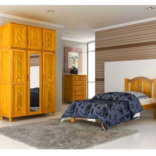 Conteúdo da Embalagem: 1 Guarda-Roupa, 1 Cômoda, 1 Cama Solteiro, Kit Ferragem e Manual de Instruções;
