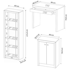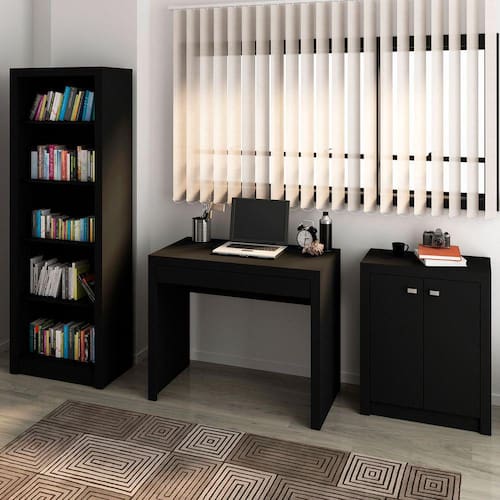 Medidas dos Produtos do Conjunto: ------------------------------------------- Largura(Cm): 60 Altura(Cm): 74,5 Produto: Estante para Livros Largura(Cm): 60 Profundidade(Cm): 31,5 Altura(Cm): 171,5 Profundidade(Cm): 31,5 Altura(Cm): 74,5 Largura(Cm): 90 Profundidade(Cm): 46,5 Produto: Mesa Produto: Armário Para Escritório