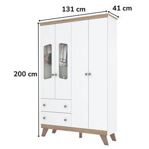 O Guarda Roupa conta com portas (com visor de vidro) com dobradiças metálicas, gavetas com corrediças telescópicas para abertura suave e puxadores em ABS. Conta também com prateleira interna e cabideiro em alumínio.