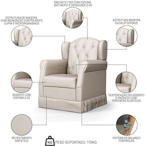 - Poltrona com Balanço em madeira com molas parafusadas.