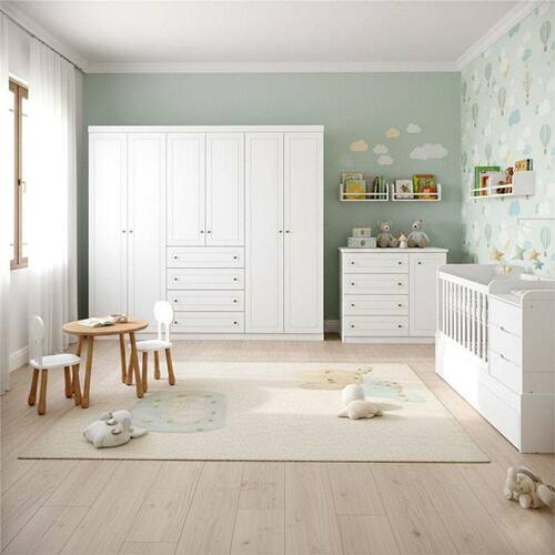 Quarto Infantil 6 Portas Americano com Berço Multifuncional Cleo Ambiente Branco Fosco - Henn