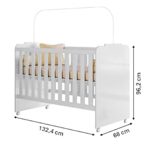 O Conjunto de Quarto Infantil Completo Sophia -Branco; Berco Mini Cama Amore C/Rodizio são perfeitos para quem deseja um Quarto Infantil onde a praticidade, segurança, aconchego sejam pontos essenciais para a composição do quarto do seu Bebê, sem esquecer é claro de uma linda decoração. Todos os berços da Peternella são certificados pelo INMETRO. Um requisito fundamental para sua segurança e a do bebê. Berco AmoreO Berco Amore Peternella é produzido em MDF bio-sustentável. É aprovado e certificado conforme regulamento do Inmetro, conta ainda com pintura UV, suporte para mosquiteiro, quatro pés de madeira, estilo retrô. Suas grades fixas de MDF proporcionam uma maior segurança ao bebê. Seu padrão é de berço americano e posteriormente poderá ser transformado em uma mini cama.CARACTERÍSTICASPintura Atóxica UV;Certificado pelo Inmetro;;Grades fixas;02 regulagens de altura do estrado.DimensõesAltura: 96 cmLargura: 132 cmProfundidade: 68 cm Indicado para colchão de 130x60cm - (COLCHÃO NÃO INCLUSO)