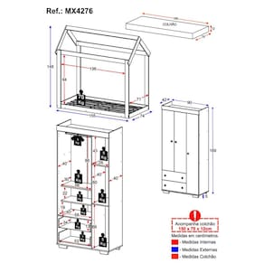 Dimensões do produto montado: Cama - Altura: 148cm | Largura: 155cm | Profundidade: 83,5cm Colchão - Altura: 12cm | Largura: 150cm | Profundidade: 70cm Guarda-roupas - Altura: 189cm | Largura: 90cm | Profundidade: 42cm *Você pode consultar as medidas detalhadas na imagem técnica do produto.