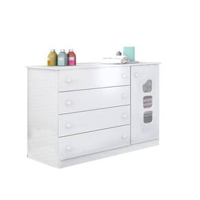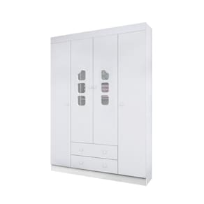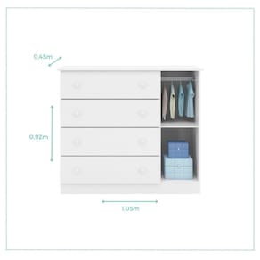 Quarto Infantil com Guarda Roupas e Cômoda Lívia Branco. Este lindo Dormitório Lívia vai encantar ainda mais o seu ambiente. Projetado para acompanhar todo o desenvolvimento infantil, dispõe de um Roupeiro com 04 Portas e 02 Gavetas além de uma Cômoda com 01 Porta e 04 Gavetas. Produzido 100% em MDF e pintura UV Alto Brilho atóxica proporcionando mais qualidade e durabilidade ao produto. As Corrediças Telescópicas promovem um deslizamento suave, silencioso e muito mais resistente. Há também cabideiros inclusos que favorecem a organização e otimizam o espaço. É sem dúvidas o Conjunto Perfeito para compor o ambiente mais importante do seu bebê com conforto, segurança e delicadeza. Ean: 7909903287101