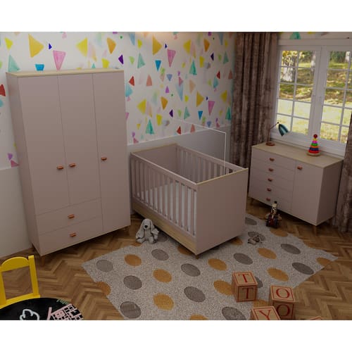 Crie um quarto infantil completo, seguro e cheio de estilo com o Conjunto Ternura da Bartira. Este kit inclui três móveis essenciais: Guarda-Roupa com 3 portas e 2 gavetas, Cômoda com 5 gavetas e 1 porta e o versátil Berço 2 em 1 Ternura Plus, que se transforma em mini cama para acompanhar o crescimento do seu bebê.