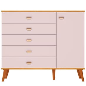 A cômoda Ternura é perfeita para manter tudo ao alcance das mãos. Com 5 gavetas espaçosas e uma porta com prateleira interna, ela oferece espaço para roupas, acessórios e objetos pessoais. Seu design funcional e pés plásticos garantem estabilidade e facilitam a limpeza do ambiente.