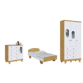 A Cama solteiro Sol é fabricada em MDF e possui pintura atóxica. Seus estrados são fabricados em madeira maciça. A cabeceiras, a peseira e as barras, são de MDF 15 mm.Os Pés são em MDF de 25mm. Essa cama sem os pés se torna uma cama montessoriana.