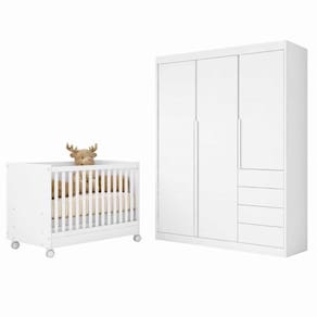 Quarto Infantil Completo Pérola com Guarda Roupa 3 Portas e Berço Mini Cama Branco - Phoenix Baby