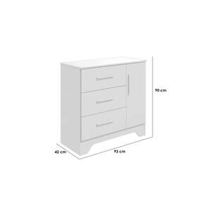 Dimensões(Cm): Comprimento(Profundidade): 42cm x Largura: 92,9cm x Altura: 89,4cm Material de Estrutura - MDF Tipo de Pintura - Ultravioleta Tipo de Acabamento da Pintura - Semi Brilho - Atóxica Tipo de Dobradiças - Dobradiças Metálicas Quantidade de Portas - 1 Porta de Abrir Tipo de Corrediça - c/ Corrediças Telescópicas Quantidade de Gavetas - 3 Quantidade de Prateleiras - 2 Certificação de Qualidade - Qualidade Aprovada Garantia - Garantia de 90 Dias