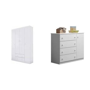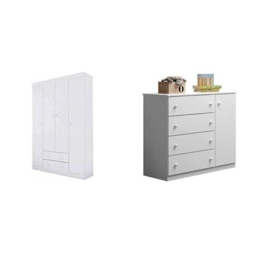 Quarto Infantil com Guarda Roupa 4 Portas 2 Gavetas e Cômoda Helena Phoenix Baby Branco. O Quarto Infantil Helena é um sonho que vai se tornar uma doce realidade! Os Móveis Helena da Phoenix Baby se destacam com um design clean, moderno e delicado, além de chamarem atenção pela resistência e qualidade dos materiais utilizados na sua confecção. O Guarda Roupas Helena conta com 2 gavetas com amplo espaço interno, 4 portas com 11 locais para guardar os pertences dos pequenos, um cabideiro metálico para você deixar as roupinhas passadas e penduradas. A Cômoda Helena conta com 4 gavetas com amplo espaço interno, 1 porta com dois nichos e um cabideiro metálico! Ean: 7908506211605