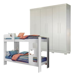 Possui Rodízio: Sim Altura do Conjunto: 220 cm Ambiente: null Ambiente Principal: Quarto Cor: Branco Informação Complementar: 1x Beliche 100% MDF com Prateleira Vegas Branco Largura: 197,5 cm Altura: 148 cm Peso: 60,5 kg Profundidade: 98 Necessita Montagem: Sim