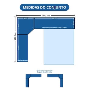 Dimensoes: Altura: 217 cm Largura: 286,1 cm Profundidade: 51 cm Peso: 226,25 kg