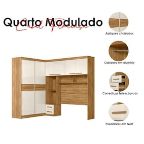 Está procurando móveis para seu quarto? Apresentamos para você este belo conjunto modulado da linha Florença. Conta com 2 portas deslizantes equipadas com trilho em alumínio, proporcionando um deslizamento mais suave e silencioso. Além disso, possui cinco gavetas com corrediças telescópicas, sendo três delas interna perfeito para organização de suas roupas e acessórios. Conta ainda com quatro portas ganhando um espaço extra e quatro nichos, perfeito para acomodar seus itens decorativos. Fabricado pela Moval, é desenvolvido em 100% MDP. Com acabamento sofisticado e design inteligente que permite duas opções de montagem, à direita ou à esquerda, adaptando-se facilmente ao seu ambiente será a escolha perfeita para quem está buscando praticidade sem abrir mão da beleza e da organização, aproveite!