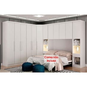 Quarto Casal Completo Rizon/Linea 7 Peças ( 1 Aéreo + 3 Guarda Roupas + 1 Closet Obliquo + 2 Complementos) QCM106 Branco - Novo Horizonte