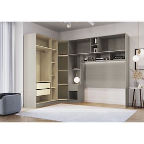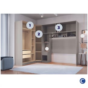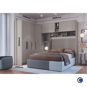 Modelo: 001EMM/002EMM Corrediças telescópicas Puxadores Cabideiro de alumínio Dobradiças de 26mm Ponte com espaço para cama de 138cm Produto Flex: Pode ser montado em ambos os lados *CAMA NÃO INCLUSA*