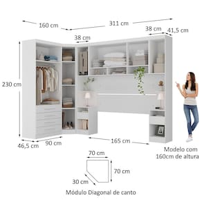 Ambiente composto por 6 Pecas: - 2 Mesa de Cabeceira Alta 38cm 1 Porta e 1 Gaveta Alpes Luciane Moveis 230 x 38 x 41,5 -Alt x Larg x Prof - cm- - 1 Guarda Roupa de Canto Diagonal Modulado 70cm 1 Porta Alpes Luciane Moveis 230 x 70 x 70 -Alt x Larg x Prof - cm- - 1 Guarda Roupa Modulado 90cm 2 Portas e 4 Gavetas Alpes Luciane Moveis 230 x 90 x 46,5 -Alt x Larg x Prof - cm- - 1 Armario Aereo Maleiro Modulado 165cm 3 Portas Alpes Luciane Moveis 82 x 165 x 41,5 -Alt x Larg x Prof - cm- - 1 Painel Cabeceira Queen 165cm Uni Alpes Paris Luciane Moveis 90 x 165 x 1,5 -Alt x Larg x Prof - cm- *IMPORTANTE: Cama, Colchao ou Conjunto Box NAO compoem o ambiente.*