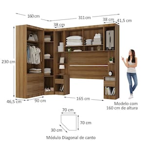 Ambiente composto por: 2 Mesa de Cabeceira Alta 38cm 1 Porta e 1 Gaveta Paris Luciane Moveis 230 x 38 x 41,50 -Alt x Larg x Prof - cm- 1 Guarda Roupa Modulado 90cm 2 Portas e 4 Gavetas Paris Luciane Moveis 230 x 90 x 46,50 -Alt x Larg x Prof - cm- 1 Guarda Roupa de Canto Diagonal Modulado 70cm 1 Porta Paris Luciane Moveis 230 x 70 x 70 -Alt x Larg x Prof - cm- 1 Armario Aereo Maleiro Modulado 165cm 2 Portas Basculantes Paris Luciane Moveis 82 x 165 x 41,50 -Alt x Larg x Prof - cm- 1 Painel Cabeceira Queen 165cm Uni Alpes Paris Luciane Moveis 90 x 165 x 1,50 -Alt x Larg x Prof - cm-