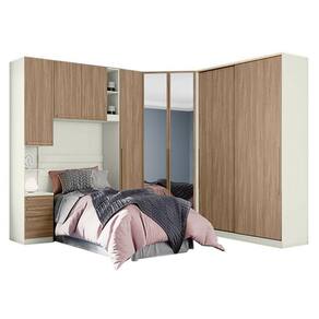 Quarto Modulado Solteiro Ambiente 2 Seletto 5 Peças Areia Jequitibá - Henn