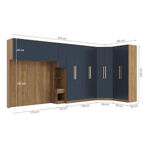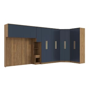 1x Guarda-Roupa de Canto 2 Portas Kappesberg Adapt Nogueira/Azul Profundo 105cm;