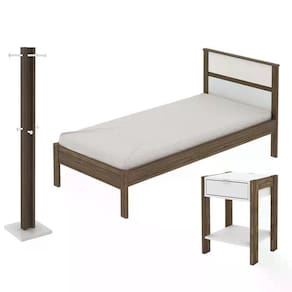 Quarto Solteiro 3 Peças, foi desenvolvido para agregar conforto e beleza no ambiente mais importante da casa, o quarto. Possui estrutura em MDP de 15mm, acabamento em pintura UV (Brilho) e partes em BP (Fosco) que garante resistência a poeira, riscos e umidade. A Cama possui estrutura em MDP 15mm e barras laterais com 25mm de espessura, estrado resistente em madeira de eucalipto que suporta até 130 kg distribuídos, é ideal para colchão com tamanho padrão solteiro de 0,88 cm (Colchão Não Incluso), o Cabideiro de chão tem 08 astes ideais para pendurar bolsa, chapéu, cinto, camisa e etc, é perfeito para manter o ambiente organizado e possui um desing moderno tornando-se um item decorativo, a Mesa de Cabeceira conta com 01 gaveta com corrediças metálicas, puxador, no tampo superior tem uma tomada acoplada, acompanha kit elétrico para encaixe na hora da , e seu tampo suporta até 15kg. Móveis com design moderno e funcional, e com acabamento super bonito e de alta qualidade possibilitando que mantenham-se como s por muito mais tempo. Estes móveis chegarão em sua casa separados em 03 volumes.