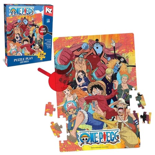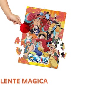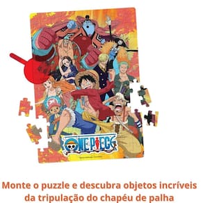 Monte o Puzzle Play 100 peças de One Piece e com a Lente Mágica encontre imagens escondidas na cena. É pura diversão Desenvolvimento cognitivo, psicomotor, capacidade de concentração, noção espacial, percepção visual