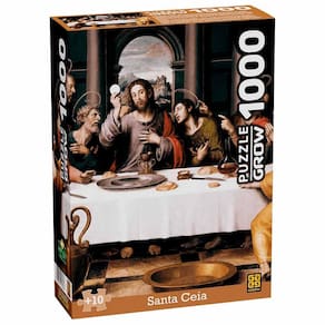 Quebra-Cabeça - 1000 Peças - Santa Ceia - Grow: a pintura Última Ceia é de Vicente Juan Masip, mais conhecido como Juan de Juanes, filho do pintor Vicente Masip. Trata-se de uma ilustração da passagem em que Jesus institui a Eucaristia, no Novo Testamento. Nela Cristo aparece rodeado por seus discípulos, identificados pelos nomes nas respectivas auréolas. Judas também está ali, de costas para quem vê a obra. Para criá-la, Juan de Juanes se inspirou no quadro de Leonardo da Vinci, também chamado A Última Ceia, tanto para a composição quanto para a doçura das cores e dos rostos de sua obra. O Quebra-Cabeça Santa Ceia é composto por peças produzidas em papel cartão. Fabricado com qualidade de impressão em alta definição para valorizar cada detalhe. As peças são de fácil. Montado tem a dimensão de 49,7 cm de altura por 69,7 cm de comprimento. Dicas para montagem: 1 - Confira o número de peças com a informação existente na embalagem 2 - Providencie uma base (papelão ou madeira) um pouco maior que a imagem a ser montada. As dimensões da imagem podem variar em até 1% 3 - Separe as peças com cantos retos e monte, sobre a base, toda a borda da imagem a ser montada 4 - Separe as demais peças, agrupando-as pelas cores, para facilitar a sua localização 5 - Quando chegar a uma área com muitas peças da mesma cor, separe-as pelo formato 6 - Mantenha o quebra cabeça em lugar plano, enquanto estiver fazendo a montagem 7 - Depois de montar, certifique-se de que todas as peças estão bem encaixadas, e nos lugares corretos Informações: • Produto: Quebra-Cabeça Santa Ceia 1000 peças • Marca: Grow • Coleção: Santa Ceia • Tipo: Quebra-Cabeça • Categoria: Quebra-Cabeça e Puzzles • Dimensões: 49.7 x 69,7 (montado) • Conteúdo: 01 Puzzle de 1008 peças • Recomendação: para crianças a partir de 10 anos de idade Especificações: • Referência: 01393 • Código de Barras: 7908010113938 • Embalagem (C x A x L): 27.1 x 37.6 x 5.5 cm • Embalagem (Peso): 0.532 kg • Material / Composição: Papel e papel-cartão • Certificado: Órgãos Autorizados - OCP´S (Organismos de Certificação de Produtos) Benefícios de montar quebra-cabeça: • Eleva a autoestima • Exercita a memória • Estimula o raciocínio • Exercita o imaginário • Desenvolve a criatividade • Desenvolve percepção visual • Desperta a atenção e curiosidade • Desenvolvimento neuropsicológico • Estimula habilidades motoras básicas • Incentiva a comunicação e linguagem • Desenvolve aspectos emocionais e afetivo • Estimula o reconhecimento de formas e cores Aviso: • As imagens são meramente ilustrativas • Os pesos, tamanhos e medidas são aproximados • As cores e estampas dos produtos podem ter variações • As informações são de responsabilidade do fabricante ou fornecedor