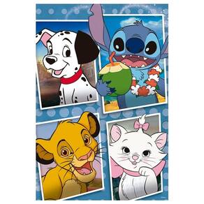 Não deixe de brincar e se divertir com este quebra-cabeça, que traz os clássicos personagens Lucky de 101 Dálmatas, Stitch de Lilo&Stitch, Simba de Rei Leão e Marie de Atistogatos.