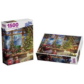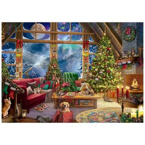 Celebre a magia do Natal com nosso quebra-cabeça de 1500 peças, "Noite Feliz"! A imagem apresenta uma cena encantadora de uma casa natalina, com uma janela que dá para a neve caindo suavemente, uma árvore de Natal iluminada e uma lareira, criando um ambiente aconchegante e acolhedor.