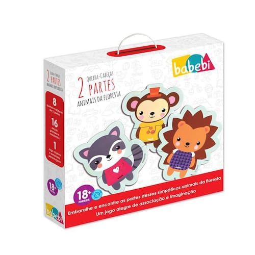 Indicação: crianças a partir de 18 meses. Material: cartonado. Conteúdo da Embalagem: 8 quebra-cabeças de 2 partes, de 15 cm cada, grandes e resistentes. Dimensões da Embalagem: 21 x 19 x 4,5 cm.