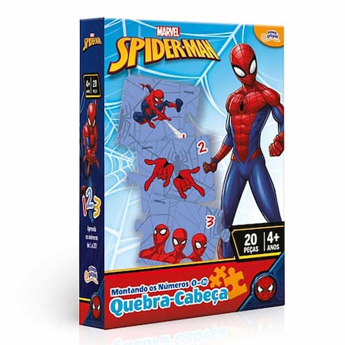 Quebra-Cabeça - 20 Peças - Spiderman - Montando os Números - Toyster: divirta-se Montando os Números do 1 ao 20 com o Homem-Aranha! Esse incrível quebra-cabeça educativo de 20 peças com peças ilustradas com personagens das aventuras do Spiderman é perfeito para estimular o aprendizado e a diversão. As peças em papel e papel cartão tem alta qualidade de impressão para valorizar cada detalhe da imagem do quebra-cabeça. Detalhes: • Tamanho: 34.5 x 22.5 cm (montado) • Peças grandes com números e figuras para aprender os números • Quebra-cabeça com peças numeradas do 1 ao 20 • Com personagens ilustrados das Princesas e seus amigos Informações: • Produto: Montando os Números do 1 ao 20 Homem Aranha • Marca: Toyster • Coleção: Marvel Spiderman (Homem-Aranha) • Tipo: Quebra-Cabeça Educativo • Categoria: Quebra-Cabeças e Puzzles Infantis • Dimensões: 34.5 x 22.5 cm (montado) • Conteúdo: 20 peças • Recomendação: para crianças a partir de 04 anos de idade Especificações: • Referência: 8045 • Código de Barras: 7896054080456 • Embalagem (C x A x L): 13.2 x 20.5 x 4.5 cm • Embalagem (Peso): 0.260 kg • Material / Composição: papel e papel cartão • Registro: 000 520/2022 OCP 0006 • Certificado: Órgãos Autorizados - OCP´S (Organismos de Certificação de Produtos) Benefícios de montar quebra-cabeça: • Eleva a autoestima • Exercita a memória • Estimula o raciocínio • Exercita o imaginário • Desenvolve a criatividade • Desenvolve percepção visual • Desperta a atenção e curiosidade • Desenvolvimento neuropsicológico • Estimula habilidades motoras básicas • Incentiva a comunicação e linguagem • Desenvolve aspectos emocionais e afetivo • Estimula o reconhecimento de formas e cores Aviso: • As imagens são meramente ilustrativas • Os pesos, tamanhos e medidas são aproximados • As cores e estampas dos produtos podem ter variações • As informações são de responsabilidade do fabricante ou fornecedor