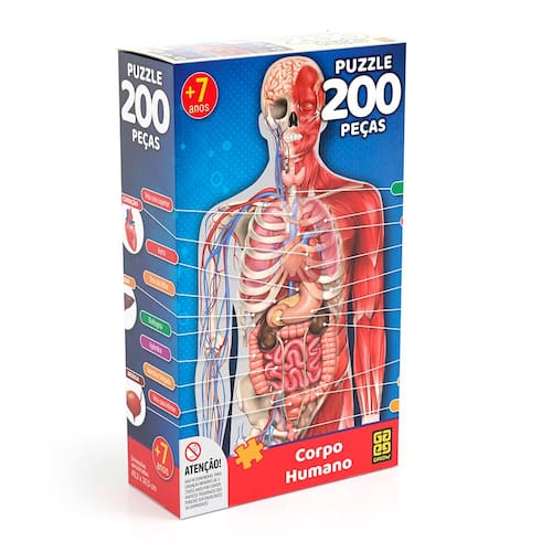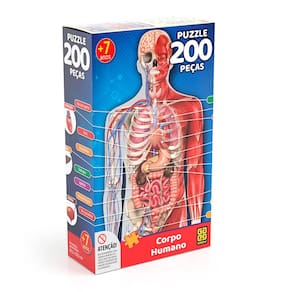 O quebra-cabeça com o tema do corpo humano da Grow, é fabricado em material de alta qualidade para garantir durabilidade e resistência durante seu uso. Conta com 200 peças para você conhecer um pouco mais sobre a anatomia humana.