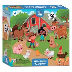 Quebra-Cabeça - 30 Peças - Madeira - Fazendinha - Nig Brinquedos: O quebra cabeça Fazendinha apresenta 30 Peças em madeira MDF para as crianças encaixarem uma a uma até formar a incrível imagem de uma fazendinha com diversos animais. As peças são de fácil encaixe. Montado tem a dimensão de 26 cm de altura por 34 cm de comprimento • Dicas de como montar: 1) Antes de montar, arranje uma base um pouco maior do que o quebra-cabeça a ser montado. 2) Comece separando o quebra-cabeça pelas peças com laterais sem encaixe para a montagem das bordas. 3) Organize as demais peças por cor, para facilitar a visualização do espaço que cada peça deverá ocupar. 4) Inicie por um dos cantos e continue a compor a figura orientando-se pelas cores e pela ilustração. 5) Sempre monte o quebra-cabeça em um lugar plano e, após terminado, verifique se todas as peças estão encaixadas corretamente. Informações: • Produto: Quebra-Cabeça Fazendinha 30 Peças • Marca: Nig Brinquedos • Coleção: Fazendinha • Tipo: Quebra-Cabeça Infantil • Categoria: Quebra-Cabeça e Puzzles • Dimensões: 34 x 26 cm (montado) • Conteúdo: 01 quebra-cabeça de 30 Peças • Recomendação: para crianças a partir de 04 anos de idade Especificações: • Modelo: Puzzle 30 Peças Fazendinha • Referência: 0424 • Código de Barras: 7896200704243 • Embalagem (C x A x L): 23 x 23 x 06 cm • Embalagem (Peso): 0.315 kg • Material / Composição: Madeira MDF • Registro: 006156/2021 • Certificado: Órgãos Autorizados - OCP´S (Organismos de Certificação de Produtos) Aviso: • As imagens são meramente ilustrativas • Os pesos, tamanhos e medidas são aproximados • As cores e estampas dos produtos podem ter variações • As informações são de responsabilidade do fabricante ou fornecedor