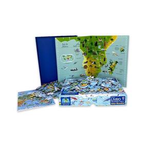 O que você vai encontrar neste produto? Quebra-cabeça com 300 peças de encaixe preciso. Ilustração detalhada de um atlas mundial com mapas, animais, bandeiras e pontos turísticos. Imagem colorida e educativa que instiga a curiosidade das crianças. Caixa resistente com arte inspiradora, ideal para guardar ou presentear.