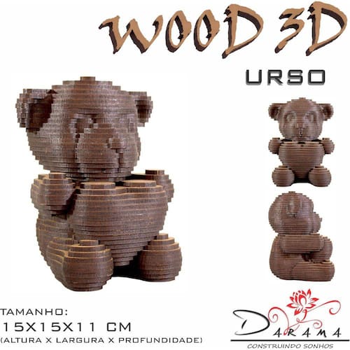 Quebra Cabeça 3D Urso Coração Decoração Ornamento Enfeite
