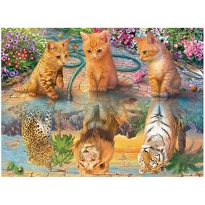 Dê vida aos reflexos que fazem gatinhos se verem como majestosos felinos, ensinando uma lição sobre autoimagem e poder interior!