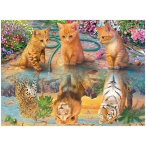 Descrição do produto Dê vida aos reflexos que fazem gatinhos se verem como majestosos felinos, ensinando uma lição sobre autoimagem e poder interior. A montagem de um quebra-cabeça por passatempo ou por hobby traz momentos de alegria a cada peça montada. Aos poucos, um pedaço do mundo vai se formando e, em pouco tempo, uma paisagem maravilhosa está completa. E a sensação de ter feito uma viagem ou cumprido um desafio gera uma satisfação inigualável.