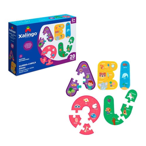 Brincar e aprender nunca ficou tão divertido com o Quebra-Cabeça AEIOU 20 peças da Xalingo! O jogo desenvolve a atenção, a discriminação visual, o pensamento lógico e a relação parte/todo, bem como facilita a exploração de temas variados. Além de educativo, o quebra-cabeça números auxilia o aprendizado das letras, suas formas e vocabulário. Indicado para crianças a partir dos 2 anos.