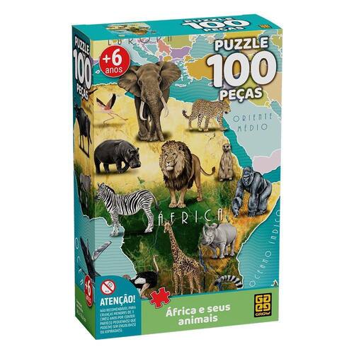 Quebra Cabeça África E Seus Animais 100 Peças Grow