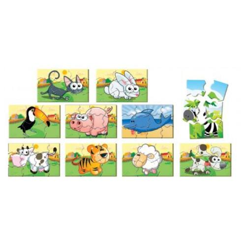 O Quebra-cabeça de Animais auxilia no desenvolvimento de raciocínio lógico, coordenação motora e socialização, além de contribuir para o enriquecimento do vocabulário e para o ensino de zoologia. O conjunto é confeccionado em MDF e impresso em policromia. Contém 10 quebra-cabeças, cada um medindo 280x180x2,8mm, com diferentes recortes para 6, 9 e 12 peças. Acondicionado em caixa de papelão. Faixa etária: A partir de 3 anos