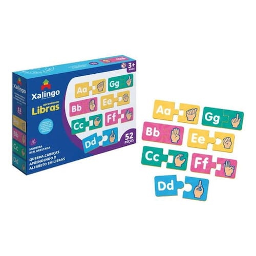QUEBRA CABEÇA APRENDENDO O ALFABETO EM LIBRASAprender o Alfabeto em Libras ficou mais fácil e divertido! O jogo contribui com o desenvolvimento das habilidades de identificar as letras escritas em Língua Portuguesa e associá-los com os seus sinais em Libras. É composto por 52 peças em madeira reflorestada, e o mesmo ajuda a desenvolver a atenção, a noção de forma, a habilidade de encaixar e também a estimular o aprendizado da Libras.Preço por unidade.Contém:- 52 peças.Especificações:- Dimensões aproximadas: 24cm (altura) x 5cm (largura) x 18cm (comprimento)- Composição/Material: Madeira- Inmetro: 006182/2020 Marca: XALINGO S A