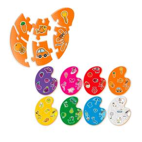 Material didático para crianças em fase pré-escolar. Essa atividade irá ajudar a criança a conhecer e associar as cores, por meio da montagem de 8 quebra-cabeças das principais cores. São 48 peças em madeira, coloridas e divertidas que auxiliam em diversos aspectos no desenvolvimento da criança, entre eles: Interação, coordenação motora, raciocínio lógico, associação as cores, atenção e foco.