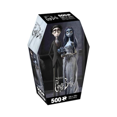 - FILME DE NOIVA CORPSE QUEBRA-CABEÇA DE 500 PEÇAS JIGSAW: Divirta-se montando este quebra-cabeça de 500 peças com nosso casal favorito do filme de Tim Burton de 2005, Noiva Cadáver. Ele mede 35 x 48 cm quando concluído e vem em uma caixa em forma de caixão com um pôster bônus da imagem