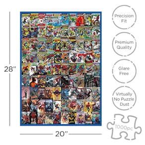 - Liberte o seu super-herói interior... Celebre mais de 50 anos do simpático Homem-Aranha da vizinhança de todos enquanto monta este quebra-cabeça de 1000 peças com uma seleção de capas de quadrinhos ao longo das décadas