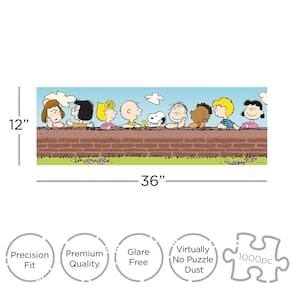 - Quebra-cabeça de 1000 peças: junte-se à conversa na parede e saia com a turma Peanuts enquanto você monta este quebra-cabeça fino de 1000 peças com Charlie Brown e seu grupo favorito de amigos. O quebra-cabeça completo mede 35 x 48 cm