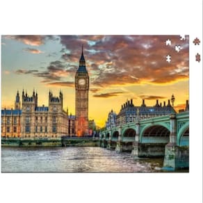 Linda imagem do famoso Big Ben em Londres. Quebra cabeça de 1000 peças Marca Pais e Filhos. A partir de 10 anos. Medidas aproximadas do quebra cabeça montado 74 x 54 cm.