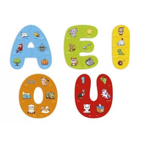 Desenvolvido com peças grandes e fáceis de manusear, ideais para as mãos pequenas. Auxilia no desenvolvimento da motricidade fina, atenção, concentração, discriminação visual e percepção da relação parte/todo. Além disso, estimula o conhecimento das letras vogais (A, E, I, O, U) por meio do agrupamento de cores e das imagens / palavras com a mesma letra inicial em cada peça, tudo de forma lúdica, segura e acessível.